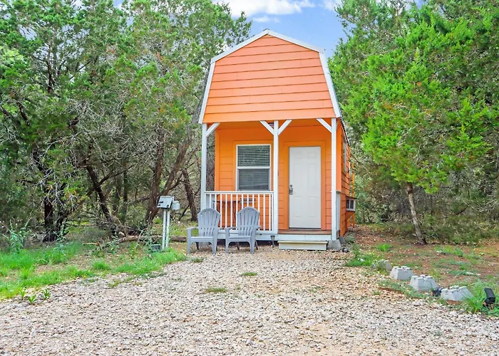 **Welcome to The Driftwoods - Orange Tiny House, a unique retreat just 60 km from Austin-Bergstrom International Airport.** Nestled in a serene landscape, this charming getaway presents an idyllic escape for travelers seeking both relaxation and adventure. With its eclectic design, the accommodation perfectly harmonizes contemporary amenities with rustic charm, creating an inviting atmosphere for all guests.